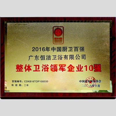 獎 項:2016年中國廚衛百強 整體衛浴領軍企業10強