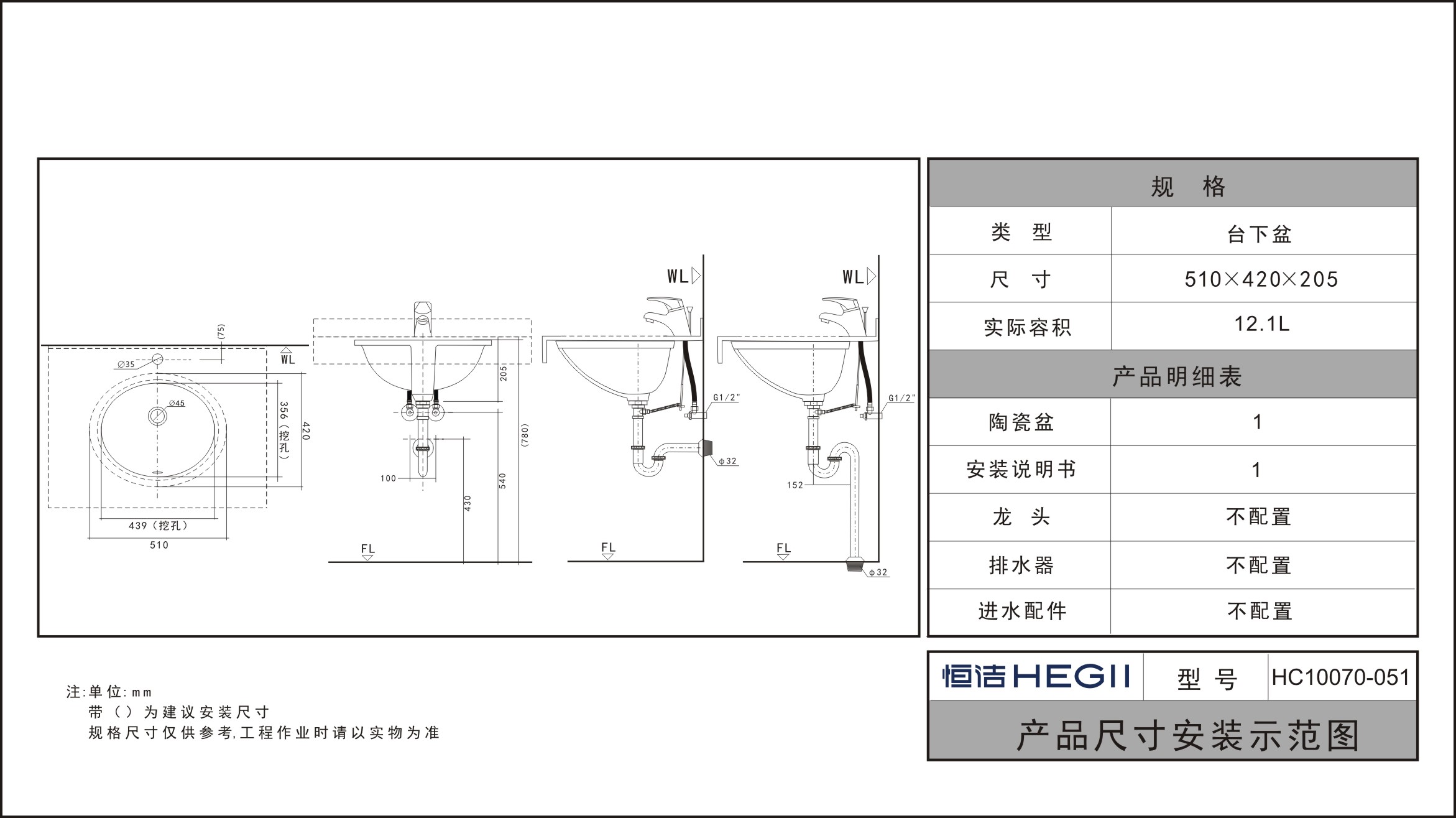 HC10070-051圓形臺下盆